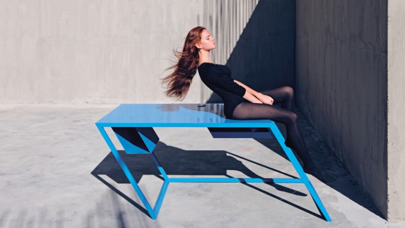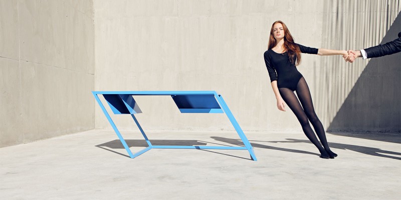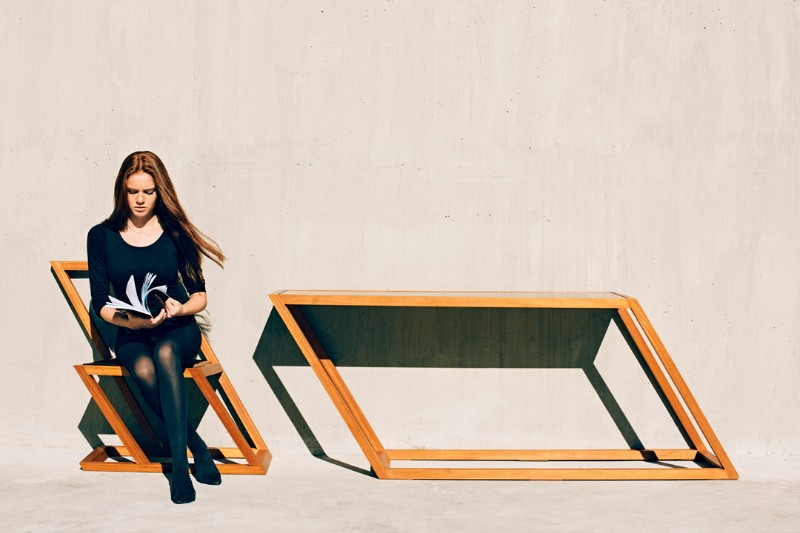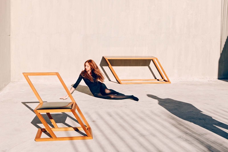 Playfully exploring the connection between tilting bodies, oblique light and the furniture’s unique design, the imaginative photos published here were produced by Tbilisi-based photography agency NakaniMamasaxlisi.