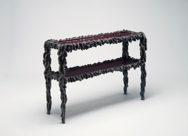 Made from bronze and finished with deep red molded glass, Atlantis is a console table that has all the potential of becoming the statement piece in your living room, its uncommon details will surpass all the design ideas. The edges and legs, almost seem like they belong from the walls of a deep cave, leading to a mysterious aesthetic for the room.