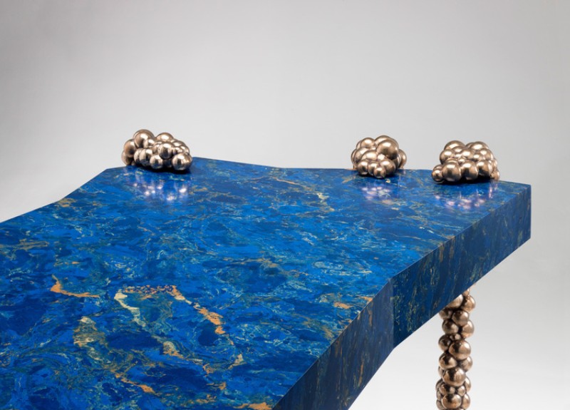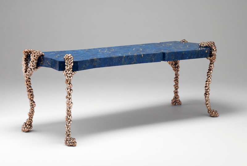 In case you’re not all about extravaganza and peculiarness shown throughout console tables, Bonetti designed a much more subtle piece. Rock Crystal enhanced the value of handmade craftsmanship by gilding this console table with silver leaf. The softness of this piece will provide peace to your living room and the bright hues will brighten up the place.