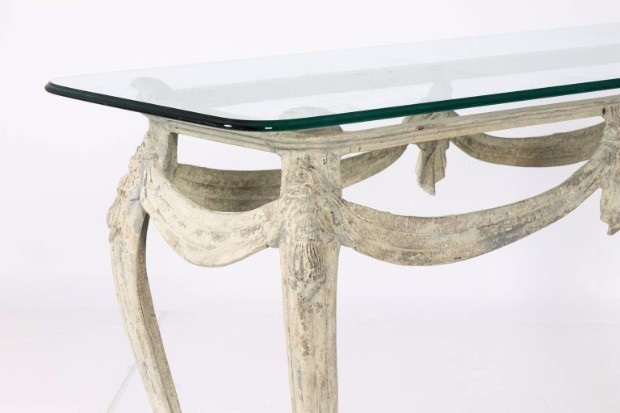 Modern consoles like this piece in white rusty metal with glass top embody the so actual farmhouse style.
